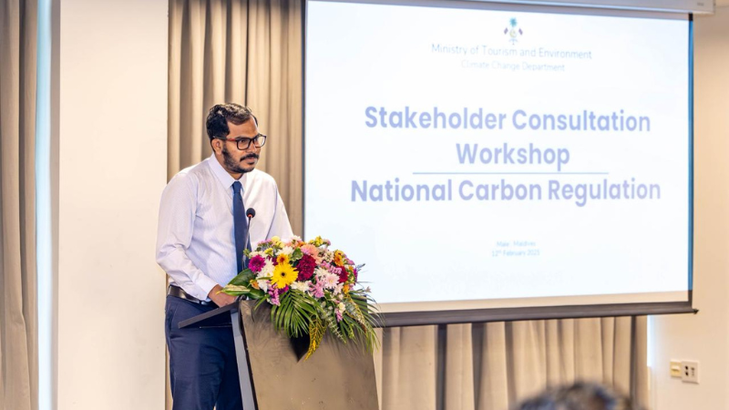The Climate Change Department (CCD) of the Ministry of Tourism and Environment convened the second stakeholder consultation workshop on the development of a National Carbon Regulation on 12 February 2026 at Meeruma, Malé. The consultation was held to present and discuss the first draft of the regulation, bringing together key government institutions, sectoral stakeholders, and technical experts.