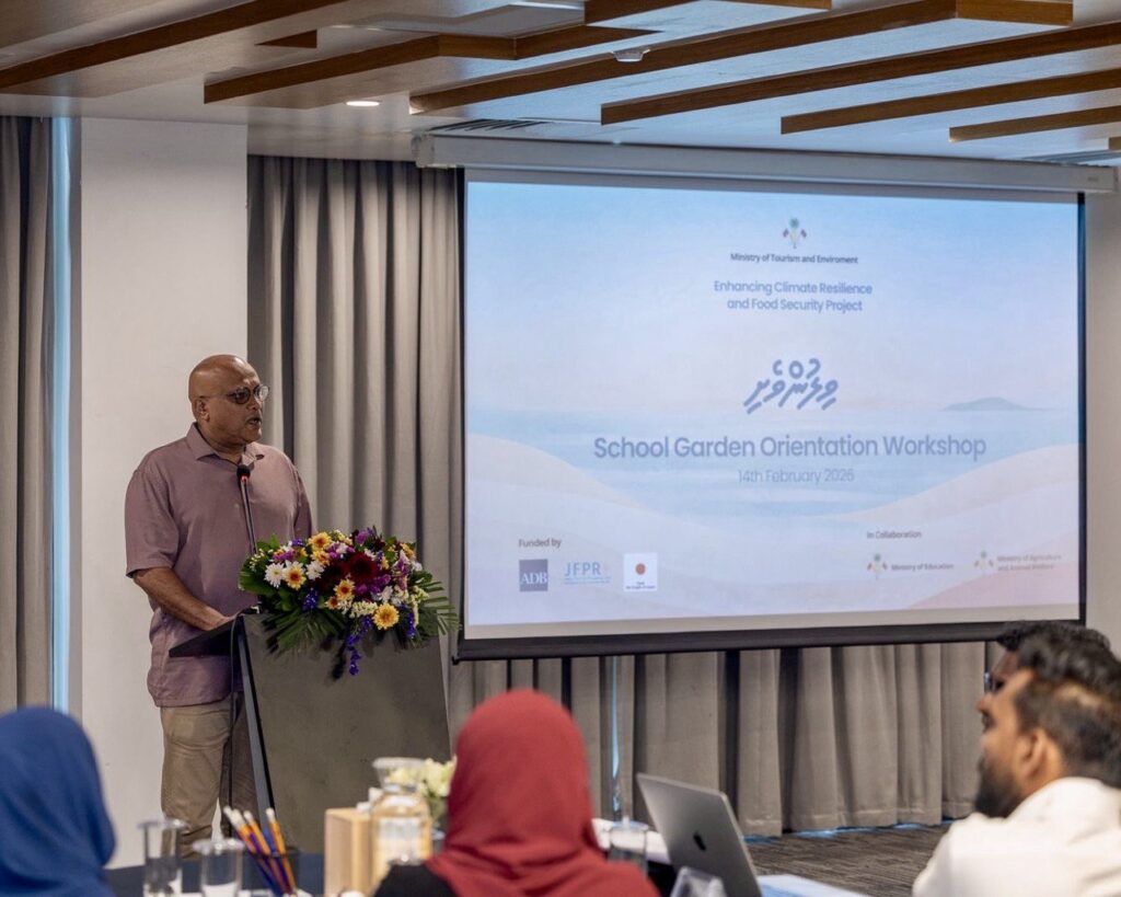 The Ministry of Tourism and Environment (MOTE) has officially launched the School Garden Program in collaboration with the Ministry of Agriculture and Animal Welfare and the Ministry of Education. The program was launched during an orientation workshop held on 14th February 2026 at Meeruma, Malé. The initiative is being implemented by the Climate Change Department of MOTE under the Enhancing Climate Resilience and Food Security Project (ECRFS).