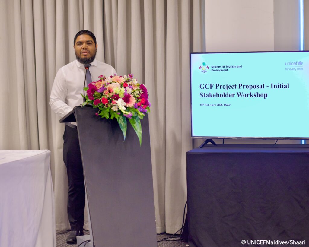 The Climate Change Department of the Ministry of Tourism and Environment, in partnership with Ministry of Education and UNICEF, convened the “GCF Project Proposal – Initial Stakeholder Workshop” on 15 February 2026 at Meeruma, Malé.
