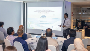 The Ministry of Climate Change, Environment and Energy (MoCCEE) has conducted a one-day knowledge-sharing workshop to present the findings of marine and coastal studies carried out along the eastern shoreline of Hdh. Kulhudhuffushi. The workshop forms part of the Marine and Coastal Modeling and Detailed Design Study under the Enhancing Climate Resilience and Food Security Project (ECRFSP). The study is being implemented by Land and Marine Environmental Resource (LAMER) Group Pvt Ltd as the technical consultancy.